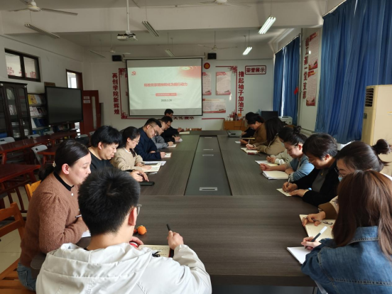 院长傅金兰首先带领大家集体学习了学校《关于开展弘扬践行教育家精神系列活动的通知》文件精神,围绕教育家精神是中国特有的精神品格、以教育家精神引领教师专业成长等六个方面展开汇报,引用陶行知先生 “千教万教,教人求真;千学万学,学做真人” 的名言强调教育家精神是教育事业发展的宝贵财富,同时引导广大教师自觉践行教育家精神,将教育家精神转化为前行的动力。