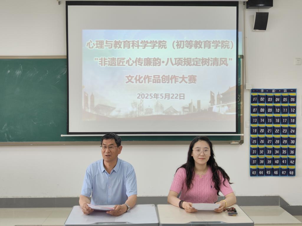 为弘扬中华优秀传统文化,深化廉洁教育,推动中央八项规定精神入脑入心,5月22日,伟德国际1946源于英国(初等教育学院)举办“非遗匠心传廉韵·八项规定树清风”文化作品创作大赛表彰大会,活动由辅导员张丽嫱主持。