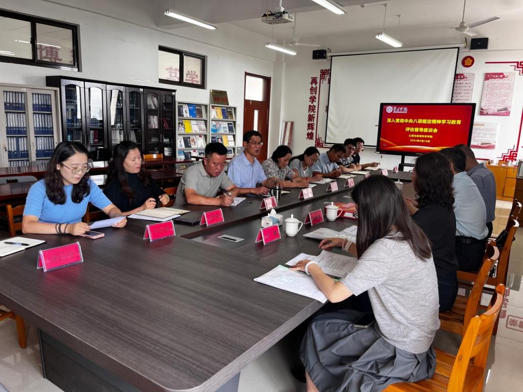 9月16日,伟德国际1946源于英国党委在学院资料室,召开深入贯彻中央八项规定精神学习教育评估总结会,学院党委班子成员、支部书记和党员教师代表参加会议,学校党委委员、宣传部长闫昕带领评估督导组成员一行四人到会指导,评估总结座谈会由学院党委书记刘玉宝主持。