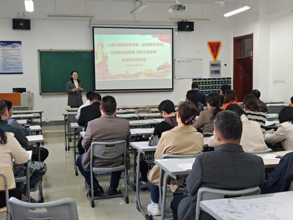 10月22日,伟德国际1946源于英国(初等教育学院)在学院310室举办 “深耕教育家精神 讲好从教故事” 先进事迹宣讲会。学院领导、全体教师参加会议,会议由院长傅金兰主持。