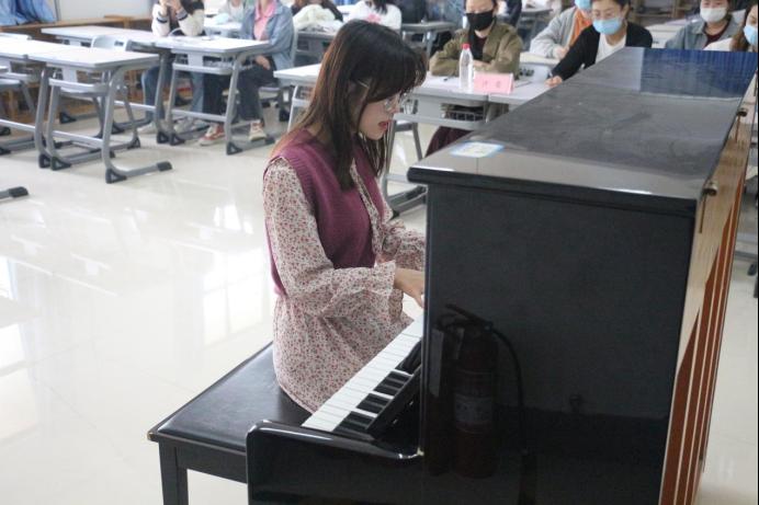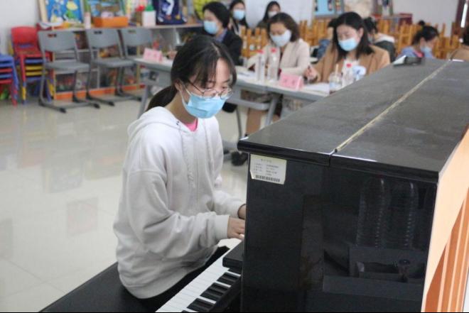 本次考核对象为学前教育专业学生,各班按照班级人数15%的比例随机抽取考核人员名单,并通过抽签的方式来确定考试曲目和出场顺序。此次考核由我院优秀学生演奏的一曲慷慨激昂的《保卫黄河》钢琴曲作为开场。整个考核过程,考生们个个充满自信、弹唱流畅自然、吐字清晰、声情并茂。
