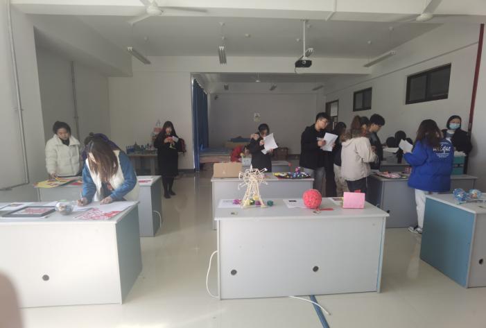 此次竞赛,共有27组同学参加,作品形式有纸工、布工、编织、刺绣、贴画、泥塑、废旧物品DIY及其他手工艺作品等平面、立体或半立体作品。各位评委老师和参评同学对作品进行了公平公正的评分,通过观察现场作品及参赛人员对作品的介绍,评定人员综合评分,其中《梦幻城堡》得分最高,被评定为本次竞赛的第一名。