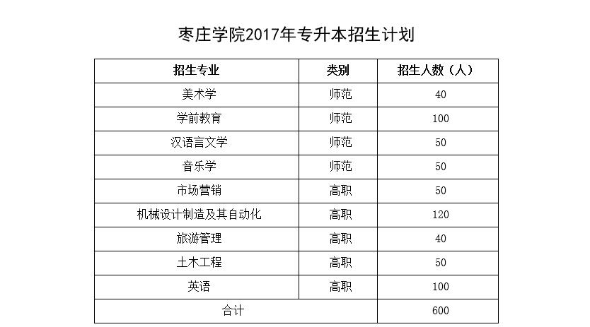 2017年专升本招生计划