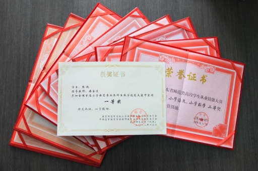我院具有良好的教风和学风,今年普通本科学生考研率28.07%。在“山东省师范类高校大学生从业技能大赛”中,近三年共取得了一等奖5名、二等奖16名、三等奖11名的优异成绩;获得全国小学教育专业大学生儿童诗画创作比赛一等奖3项、二等奖4项、三等奖8项;获得全国小学教育专业大学生书法比赛二等奖2项,三等奖3项;获全国小学教育专业本科生教学技能大赛一等奖1项,二等奖2项;在全国高校学前(幼儿)教育专业优秀毕业论文评选活动中获一等奖8项,二等奖7项,三等奖2项。90%以上的学生获得教师资格证,另有60%以上的学生取得了心理咨询师、公共营养师、高级育婴师、企业人力资源管理师等职业资格证书;毕业生就业率达到95%以上。