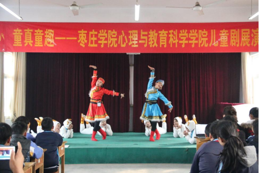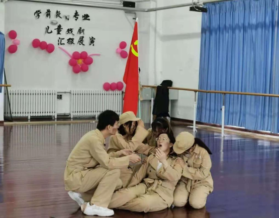 “传承红色经典,弘扬儿童文化”,儿童剧团送剧下乡也是一道亮丽的风景线,《小萝卜头》《草原英雄小姐妹》两个经典剧目传承在学院中,历经两年的成长,剧团已经发展成为一个怀抱梦想舞台、点亮童心美好抱负的学生组织。社团中每位成员以其儿童自身独特的视角与思维,去感悟体验语言文字的巨大魅力,阐述并揭示着儿童剧蕴含的无限神秘,他们努力积累表演经验,不断丰富自己内心世界,踏出了艺术人生的第一步。