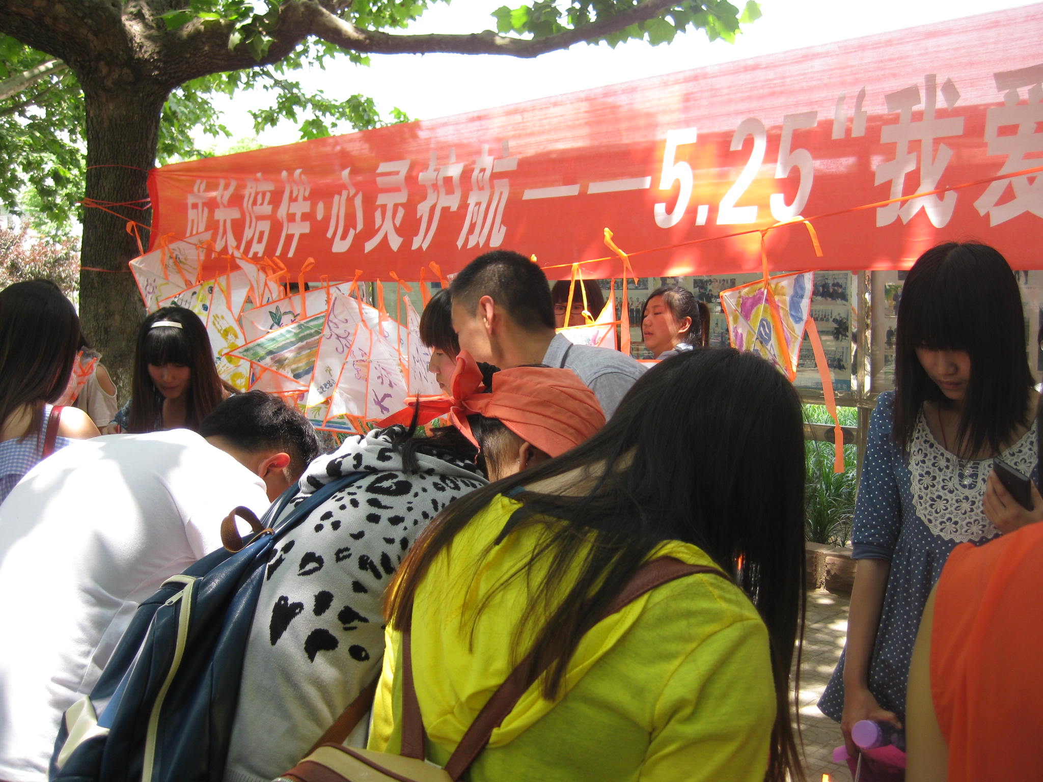 我校十分重视学生的心理健康教育工作,已连续十年举办大学生心理健康节,活动由伟德国际1946源于英国与校心理健康教育中心承办,校团委、校学工处等部门予以通力协助。今年的“5.25”主题为“成长陪伴•心灵护航”,共有心理知识宣传、心理情景剧展演、心理征文比赛、心理微博原创、心里说吧、团体心理辅导等九大环节。活动形式新颖,氛围轻松和谐,过程妙趣横生,吸引了众多师生参与。5月20日举办的心理沙龙采用团体互动的形式,通过情绪魔方、欢乐踩气球等游戏使同学们轻松学会了情绪调控;5月21日的风筝涂鸦大赛则以时尚涂鸦的形式,带动同学们画出创意、画出心情、画出健康,推动了校园正向能量的传递。