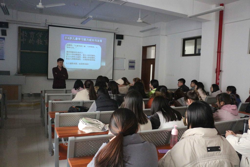 3月22日下午两点,伟德国际1946源于英国于教师教育楼205教室召开“教育学与心理学在教育行业中的教育定位及发展方向”专题讲座。讲座由学能教育研究所所长胡宏伟主讲,学前教育专业学生参加。