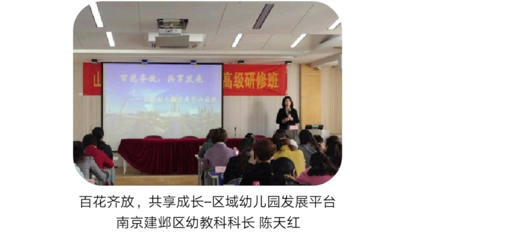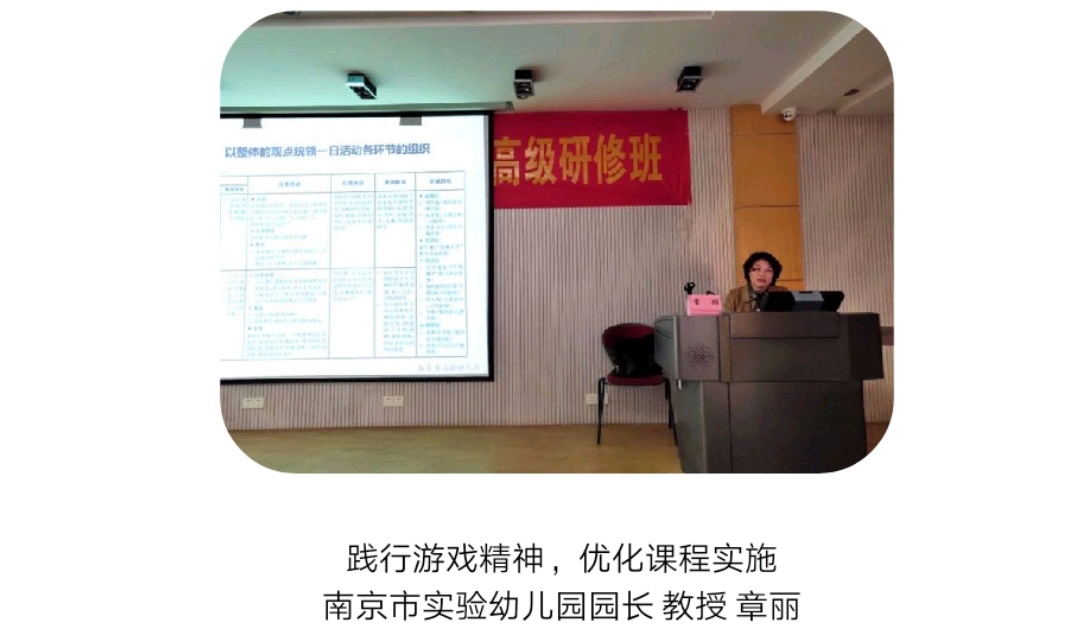在5天的培训中,六位专家分别从区域幼儿园发展平台建设、幼儿园游戏化课程建设、环境创设、园本教研、幼儿心理健康等方面给学员们带来详细的讲解。每一位专家授课主题不同,但他们鲜明的个性之中蕴藏着一种共同的幼教精神——执着、拼搏、勇于实践。