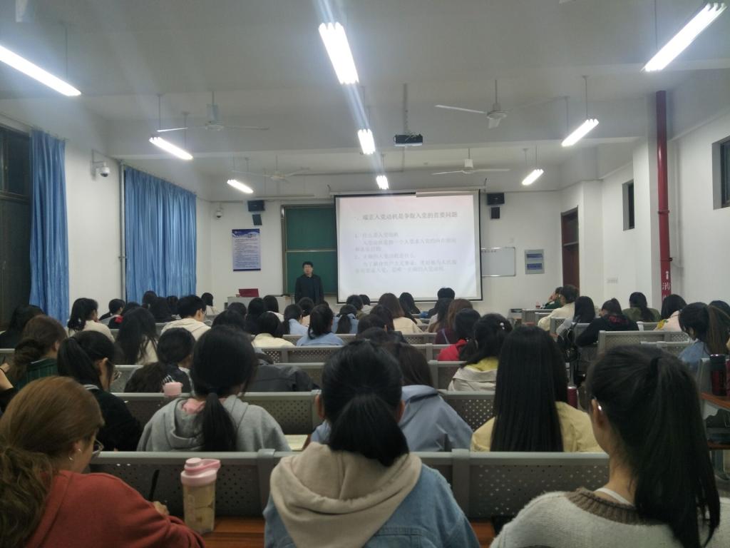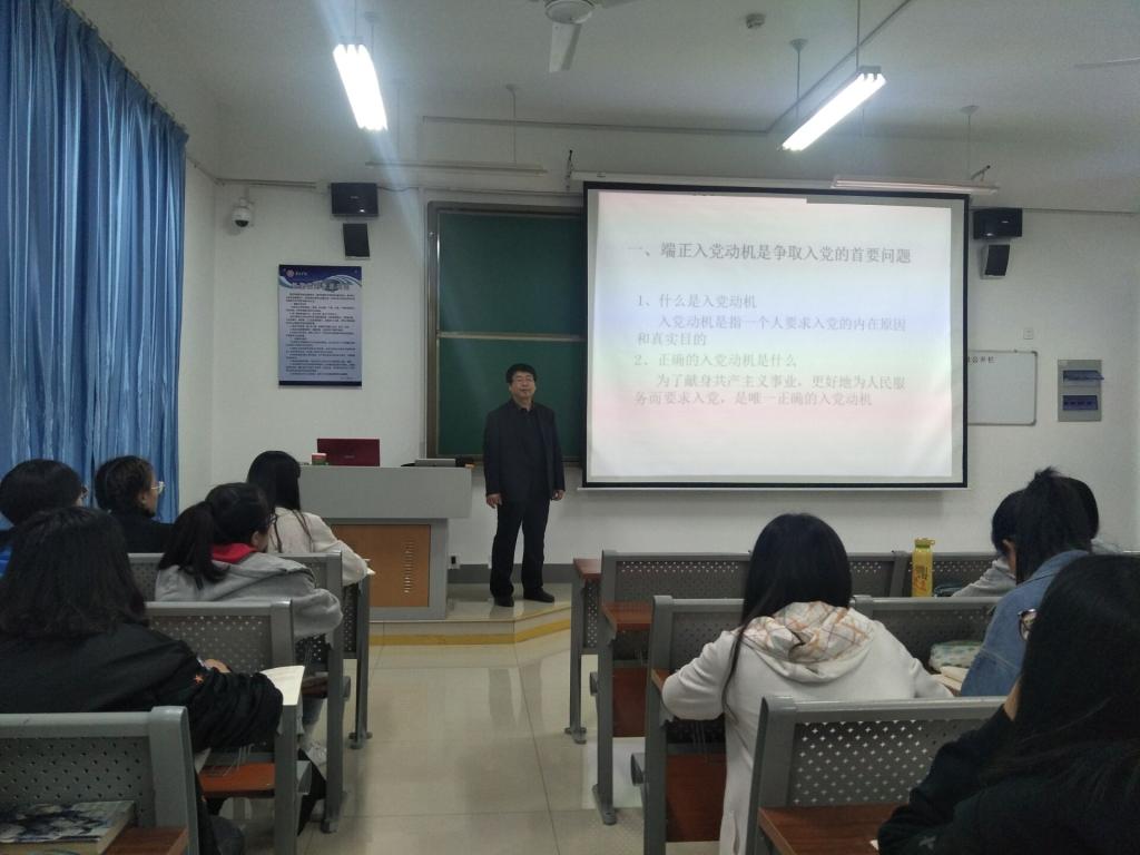 4月16日下午七点,伟德国际1946源于英国党总支书记赵荣军在教师教育楼205教室对入党积极分子进行党课知识培训。