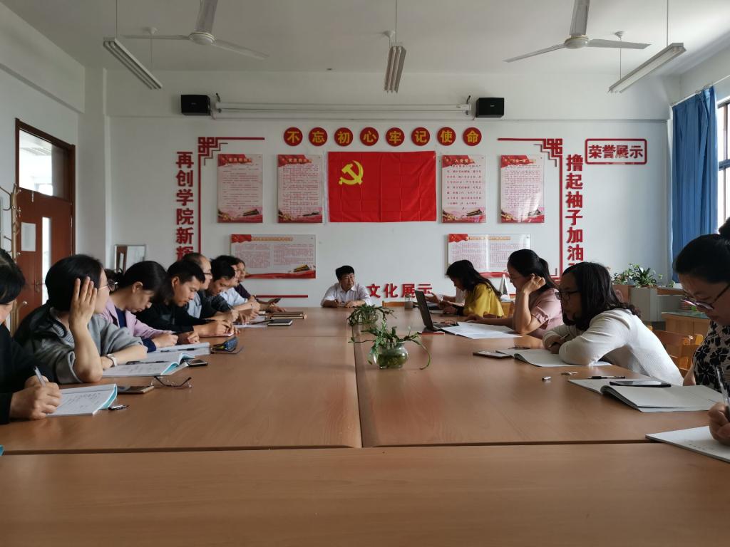 党总支书记赵荣军主持会议,院长傅金兰对我校《2019级人才培养方案修订指导意见》做了解读和说明,重点阐述了2019年本科人才培养方案的特点和修订工作的指导思想、基本思路,特别强调了2019版人才培养方案修订工作的重要性;安洪涛老师对师范类专业人才培养方案的培养目标、毕业要求及课程体系-毕业要求关联矩阵进行了详细解读和说明。