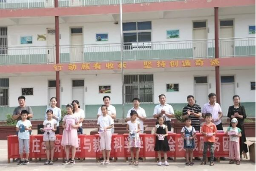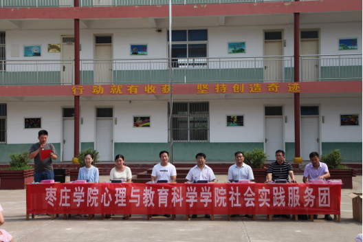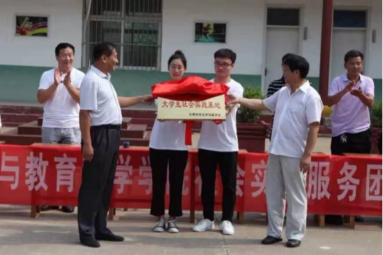 7月15日,我院在山亭区凫城镇东凫山小学举行大学生志愿者暑期“三下乡”社会实践活动启动仪式暨大学生社会实践基地揭牌仪式。我院党总支书记赵荣军、我校省派第一书记郭勇、凫城镇党委副书记史良好、凫城镇教委主任王善志、凫城镇东凫山村书记陆传扬出席活动,我院团总支副书记、支教团指导教师及志愿者共二十余人参加本次活动,活动由东凫山小学校长王彬主持。