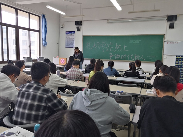 首先,各班团支书介绍了近几年枣庄市经济发展情况,并列举前几届学生建设枣庄的优秀事例。接着,团支书鼓励同学们毕业后扎根枣庄,为枣庄发展做出自己的贡献。不仅要做枣庄发展的见证者,更要做枣庄发展的参与者,推动者。最后,同学们进行讨论交流,大家纷纷表示,我们要珍惜人生中最美好的时光,增强各方面本领,提高个人素质,力争成为枣庄未来发展的中坚力量。