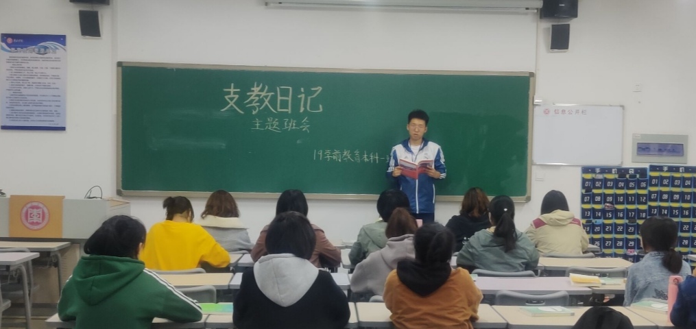 11月6日,我院2019级各班分别于教师教育楼召开“最美的青春,在喀什”支教日记学习主题班会。班会由各班班长主持,2019级全体同学参加。