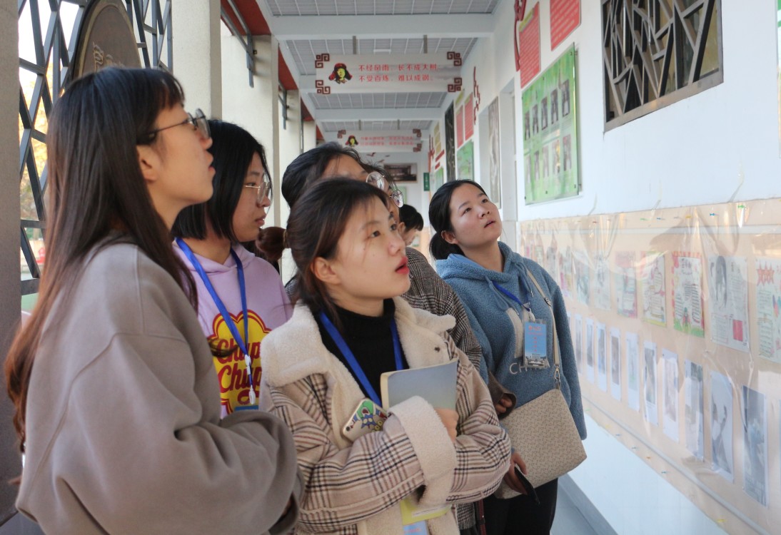 接着,我院学生参观小学的特色校园电视台和雷锋精神长廊,参与兴趣社团活动,和小学生们进行交流。在见习学校的图书阅览室中,同学们感受了浓厚的书香氛围,在操场上体验了小学生们积极活泼的状态。最后,全体师生进行合影留念,见习学校负责人对大家进行欢送。