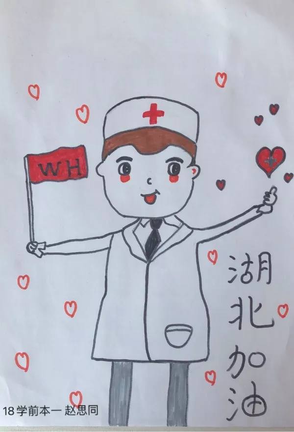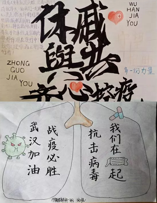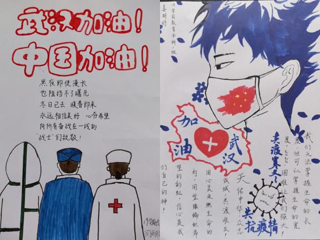 张倩组织班级学生以绘画的形式为武汉加油。