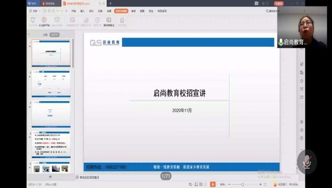 启尚教育宣讲人通过精简的ppt讲述了该集团旗下学校现状,教学活动开展情况。她表示:由衷地欢迎有枣庄故乡情怀的同学加入,为家乡教育事业添砖加瓦。