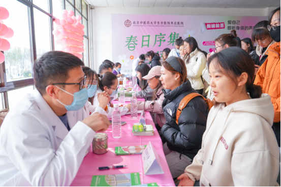 在中医茶饮体验区,精心调配的季节养生茶饮成为全场“人气王”,师生们一边品尝,一边认真聆听药师讲解茶饮配伍原理与适用人群。在中药辨识展区,药师们手持药材标本,带领师生开启“本草探秘之旅”,艾叶、茯苓、黄芪等20余种常见中药实物陈列,并结合“盲盒猜药”“气味连连看”等互动游戏,让师生在轻松愉悦的氛围中学习中药知识。在“女性健康关爱”中医适宜技术专区,提供了中医美容驻颜咨询,从内调外养角度解析肤色暗沉、脱发等问题,专家们现场演示穴位按摩手法,教授如何通过按压三阴交、太冲穴等穴位来缓解疼痛、焦虑。
