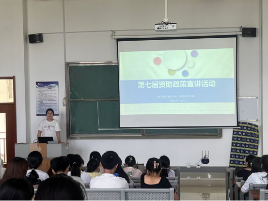 采用线下讲座的形式展开宣传活动。由学校资助管理中心聘任的128名第七届学生资助宣传大使的第五组成员,进行宣讲活动的开展。力求做到分层次、分年级,全覆盖;围绕学生资助主题,结合专业特点,从大一到大四,全覆盖式宣传国家和学校资助政策,详细介绍涵盖“奖、贷、助、补、勤、减、偿”等多项资助政策体系。资助宣传大使们还与同学们分享自己获得国家奖学金励志成才的奋斗历程,讲述矢志笃行、奋发向上的青春故事,传播了学生资助正能量,传递感恩之情,充分发挥学校优秀学子在广大青年学生中的感召性、示范性、激励性作用。