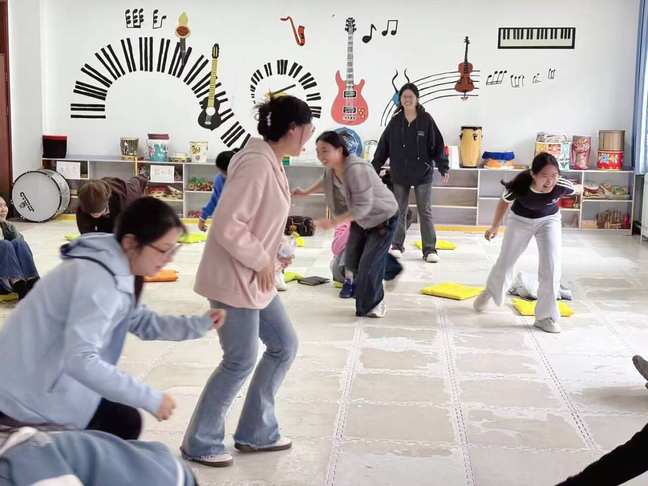 心理辅导站负责人首先围绕“团体辅导是什么、为何而行、如何落地”进行开场讲解,明确了朋辈心理辅导员在校园心理支持网络中的角色定位与能力要点。暖昕艺术心理工作室朋辈培训师,系统梳理了团体辅导的核心概念与基本流程,随后将理论联系实践,开展了节奏鲜明、互动性强的体验式环节。参训同学在朋辈培训师的带领下依次体验“大风吹”“桃花朵朵开”等经典团辅游戏,在快乐氛围中体会破冰、沟通、协作与规则建构的教育意涵,现场笑声与思考并存,方法要点与带领技巧同频落地。最后,朋辈心理辅导员们分享了所悟所获,心理辅导站负责人对本次培训进行了总结和点评,并对大家的积极投入与反思能力予以了肯定。
