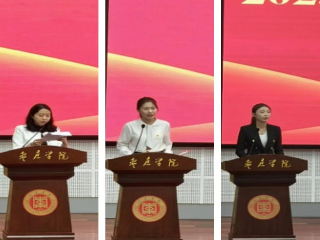 教师代表陈明勉励新生们要珍惜大学宝贵时光,深耕专业知识,打牢学术根基,在实践中提升综合能力,为实现人生理想搭建坚实平台;2022 级学生代表苏珊向新生分享了自己从时间管理、社团参与到学业规划的经验分享;新生代表张恬用真挚的话语表达了全体新生的心声,表示在未来的学习生活中脚踏实地、奋勇拼搏,努力绽放属于自己的青春光彩。