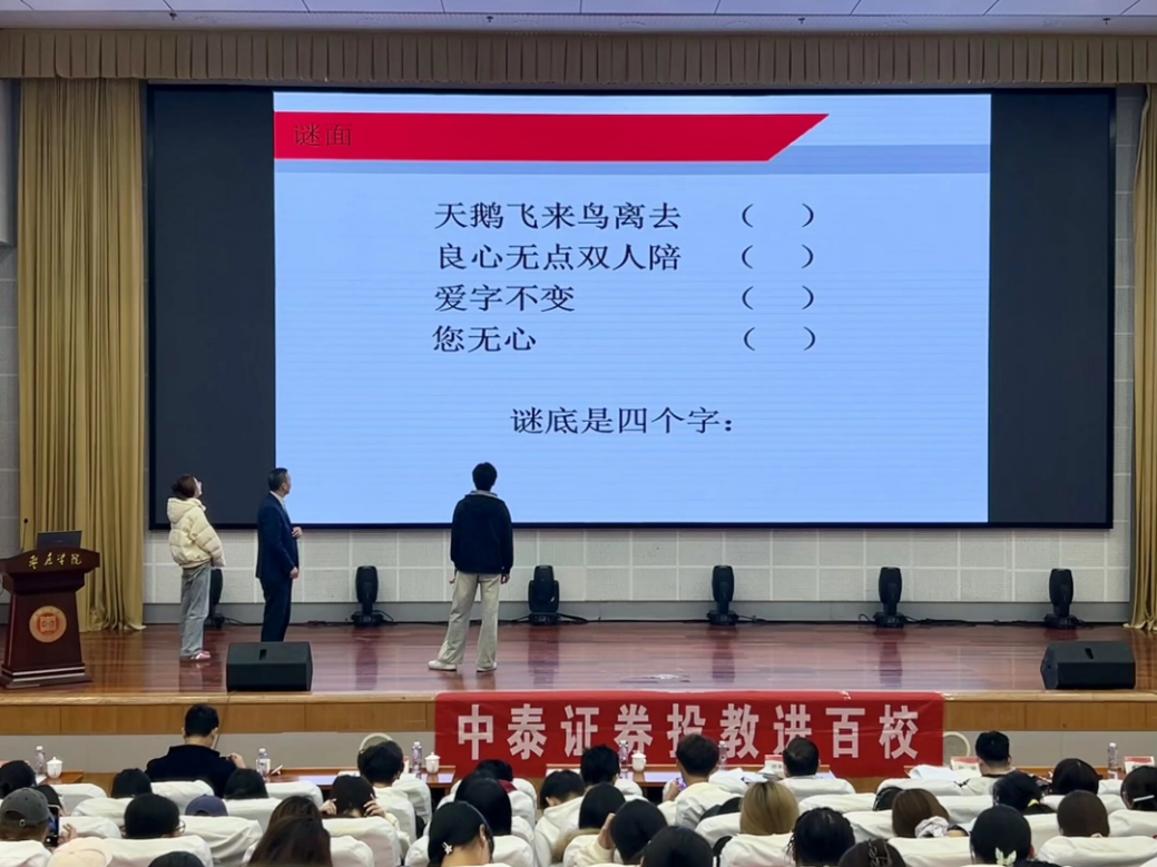 此次宣讲会不仅填补了学院学子们金融知识的空白,更引导学院学子树立正确财商,为平安校园建设注入防护力量。通过举办此类活动,体现学院对学子们身心健康与财产安全的重视,丰富育人内容,同时与中泰证券建立联系,为学院发展注入外部资源。