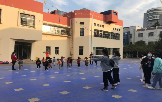 在下午的活动中我们还很幸运的参与到了小2班户外体育活动,与儿童感受阳光。