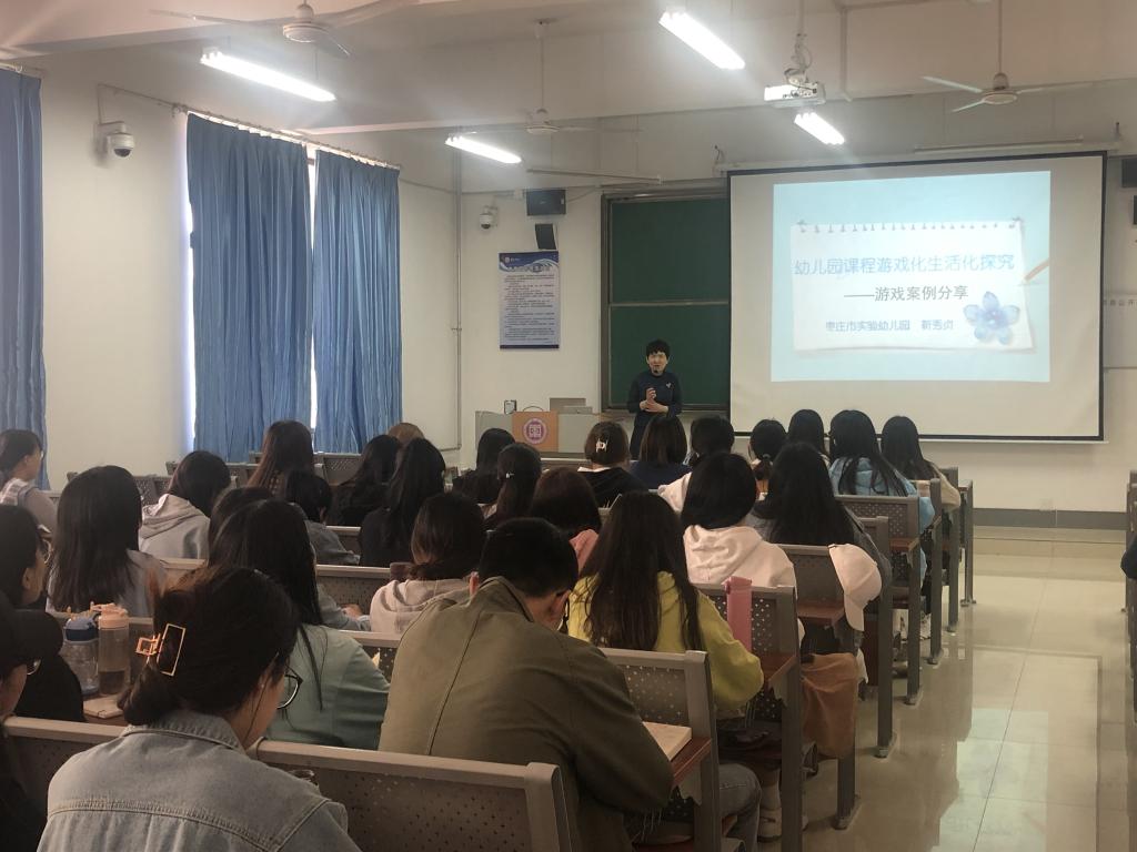 为提升学生从师技能,加强学前教育师资队伍建设,本年度我院聘请枣庄市实验幼儿园(新城园)园长靳秀贞为产业教授,承担实践教学、学术讲座、教学指导、合作研究等工作。