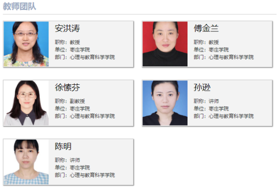 课程于2014年开始建设规划,2016年第一次开课,至今已完成8轮次教学任务。课程获批山东省线上线下混合式一流课程、山东省课程思政示范课,主讲教师成员获得山东省教学名师荣誉称号,获得山东省高校教师教学创新大赛二等奖、三等奖,获得山东省高校青年教师教学竞赛三等奖。